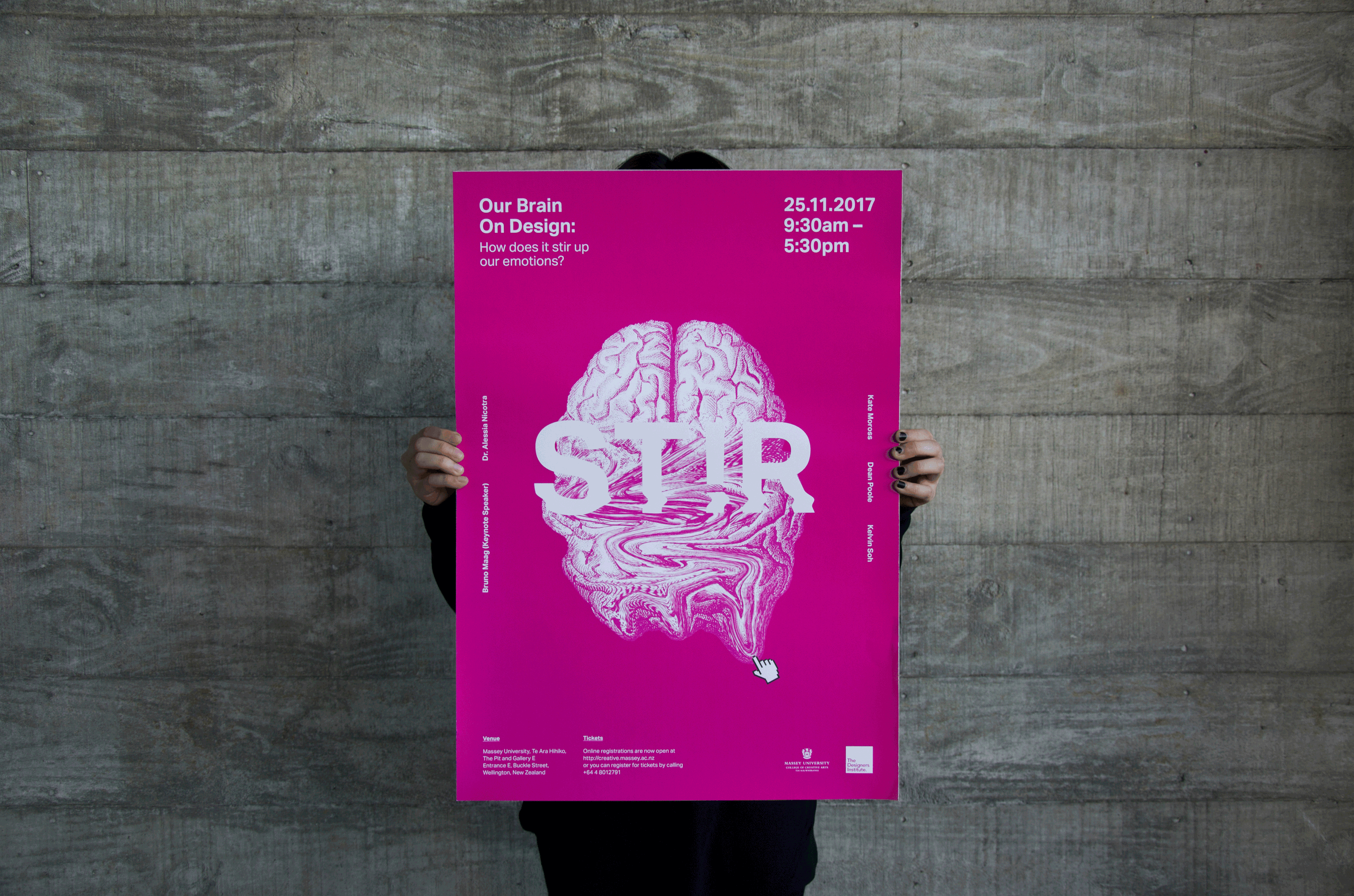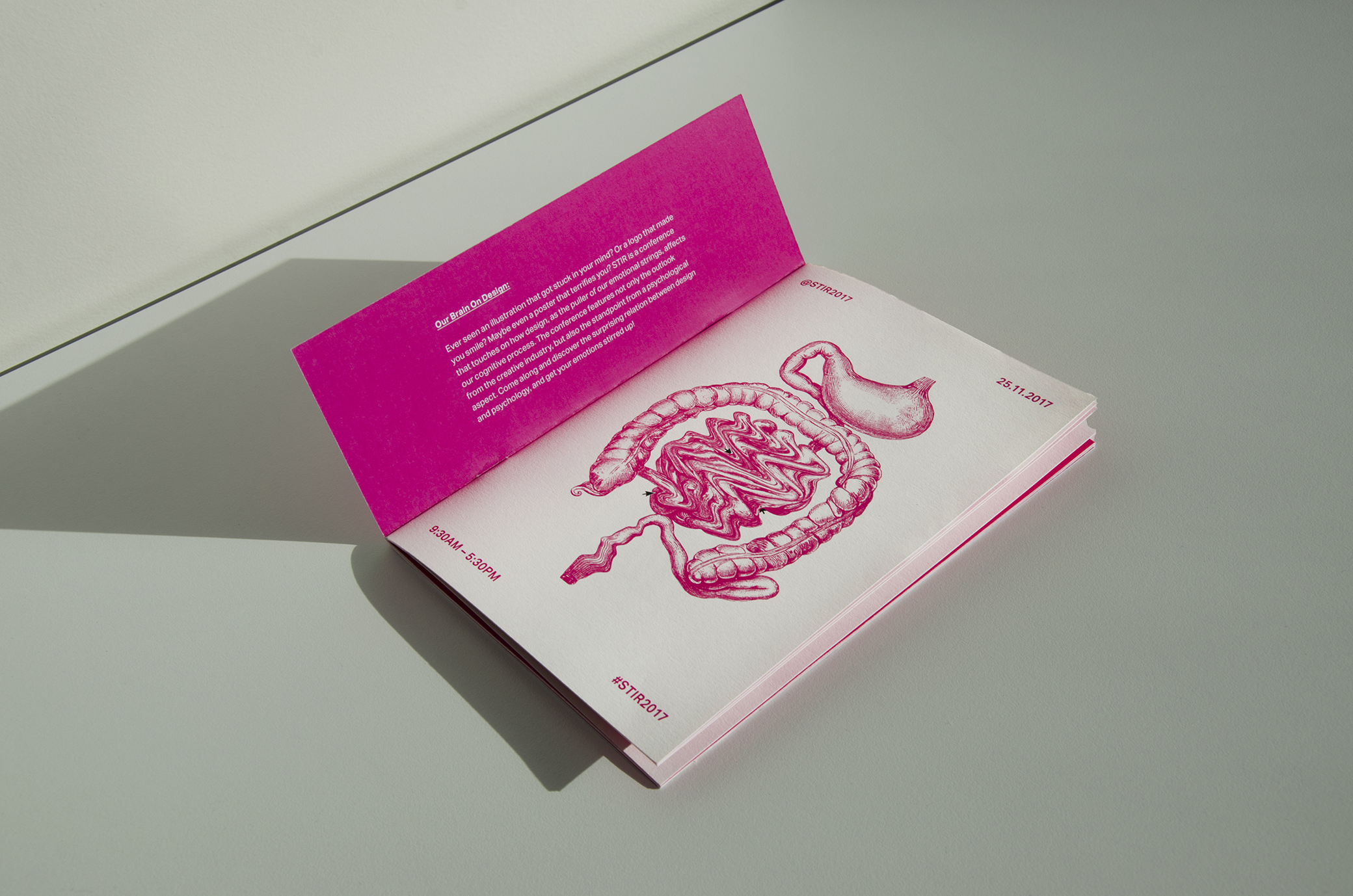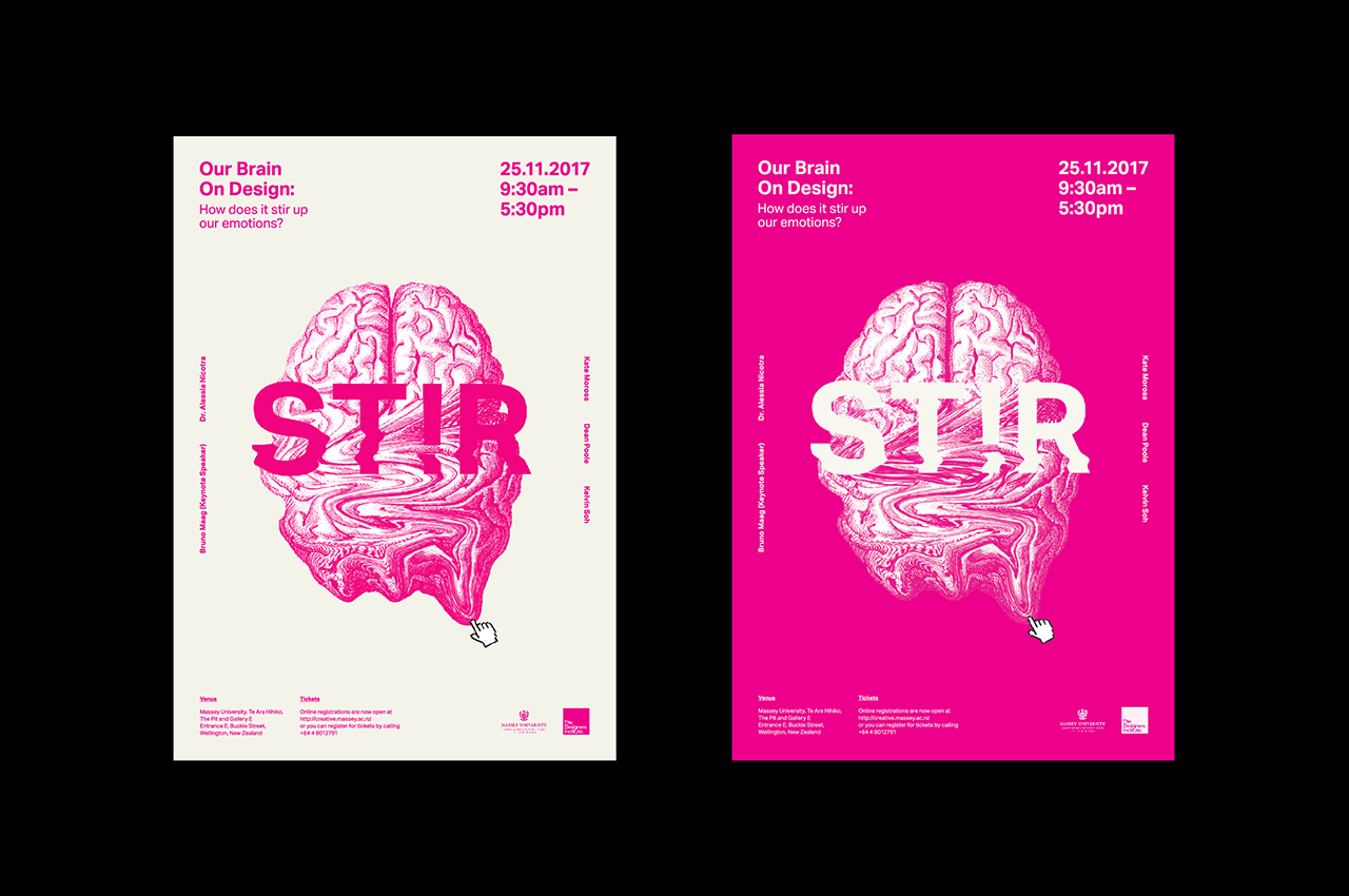 How does design affect the way we perceive information? Can our minds and emotions be manipulated through design? STIR Conference talks about the co-relation between design and psychology. It uses the manipulation of the cursor on the brain as its main identity.